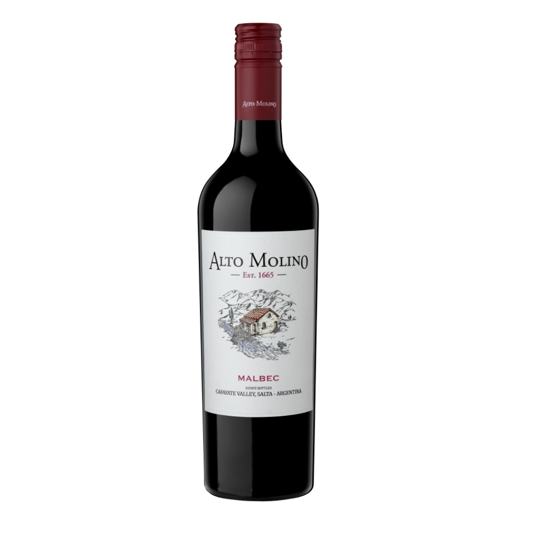 From high in the Andes surrounding Salta come Piattelli’s Cafayate wines, grown at an elevation of over 1,795 metres. The distinctively colourful north western Argentinian mountains are formed of many geological layers. The splendour of this area, with its pure water and extreme thermal amplitudes, is that it produces grapes bursting with flavour, making this not only one of the most beautiful, but also one of the premier grape growing regions in the world. The wine is named after the high altitude vineyards, ‘Alto’ meaning high and ‘Molino’, which translates as mill, taking its name from an old grain mill which was constructed by the Jesuits in 1665 which sits at the entrance of the Piattelli vineyard in Cafayate.